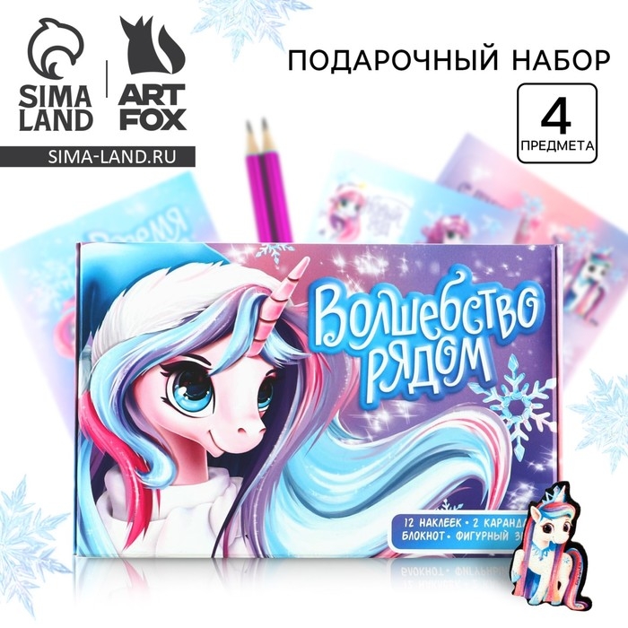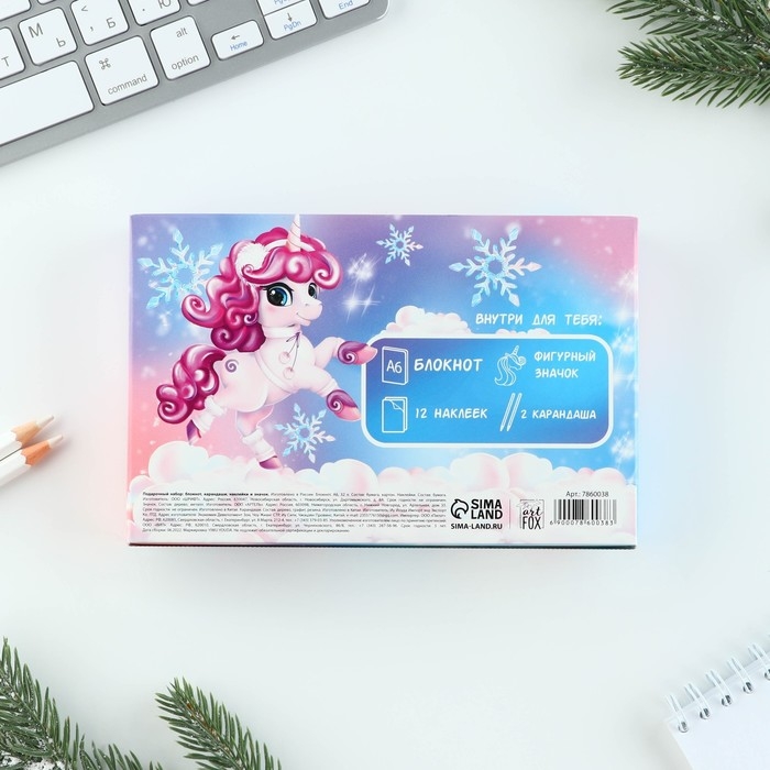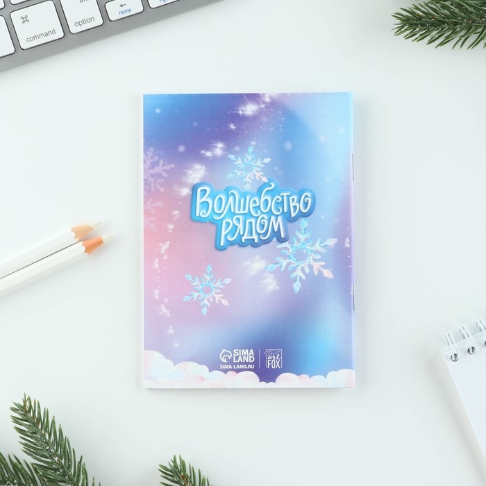 Подарочный набор новогодний «Волшебство рядом»: блокнот, карандаши, наклейки и значок
