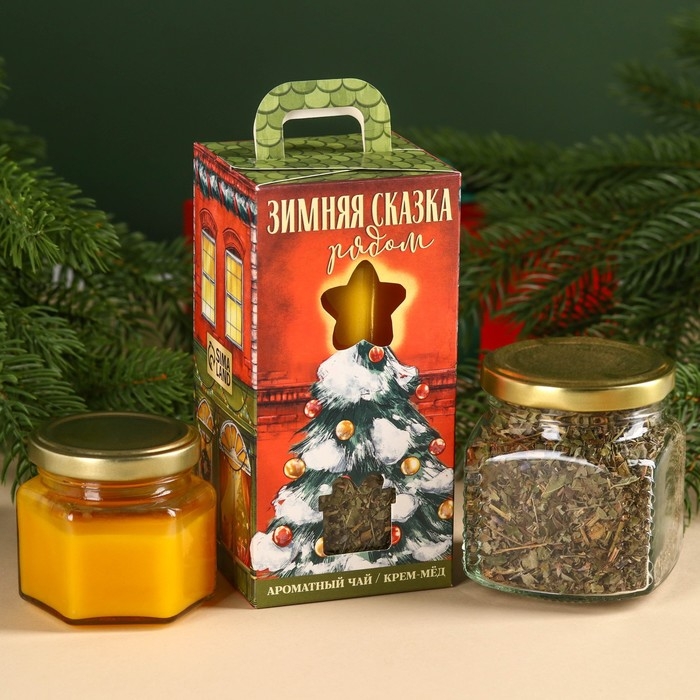 Подарочный набор новогодний «Зимняя сказка»: травяной чай , мёд кремовый с апельсином