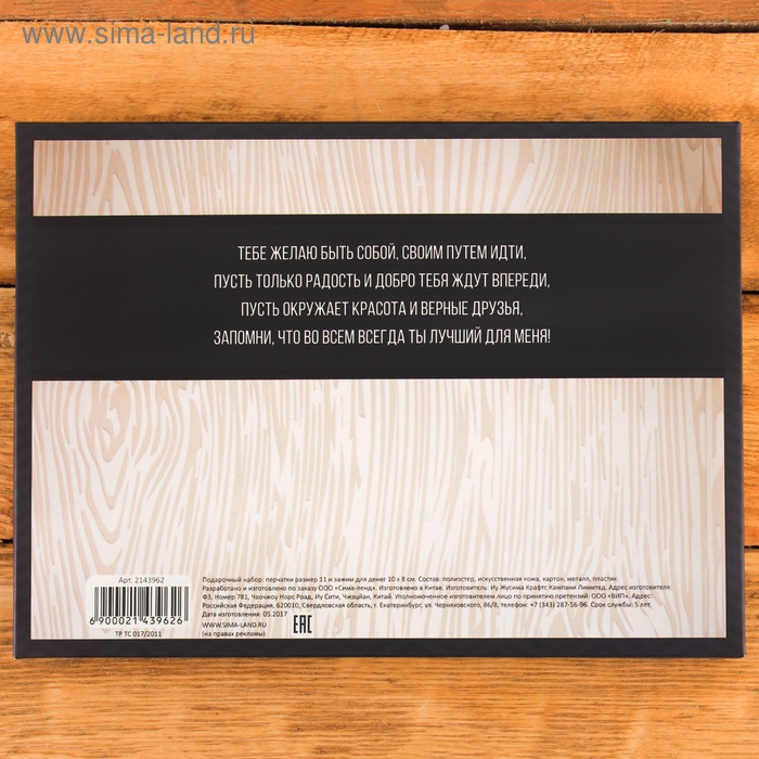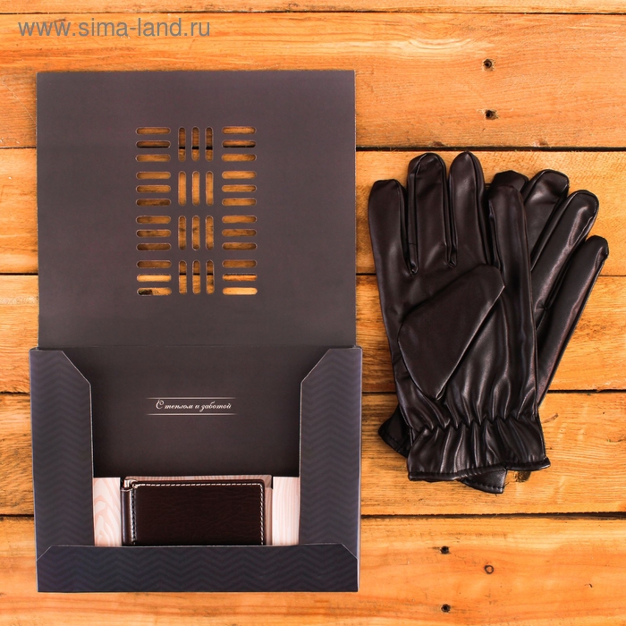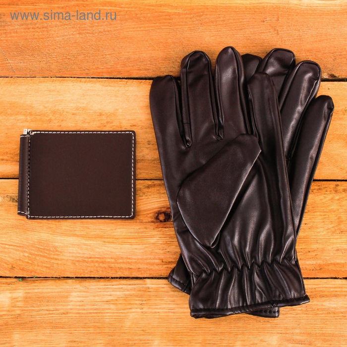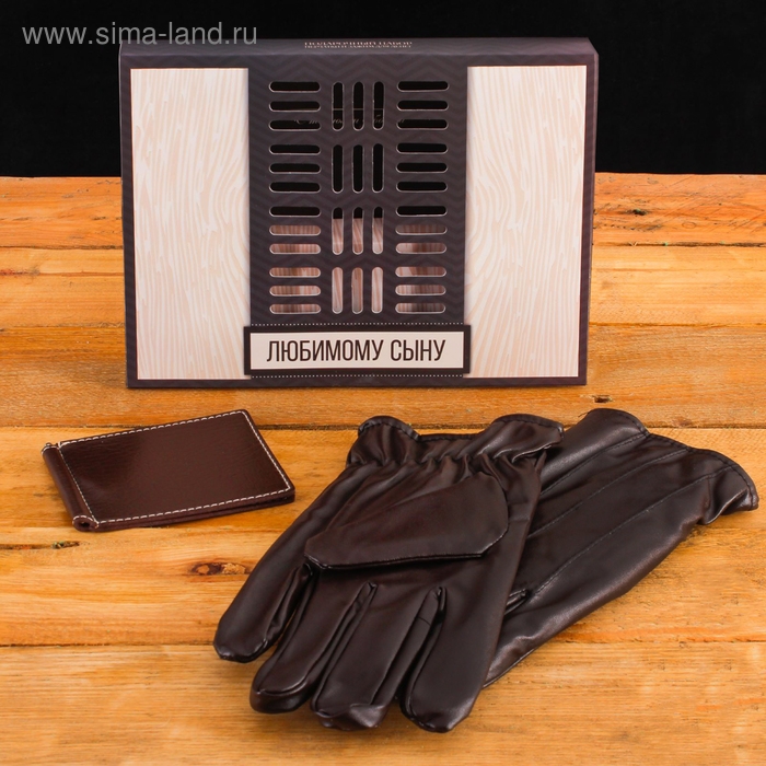 Подарочный набор "Новый год: Любимому сыну": перчатки и зажим для денег, экокожа