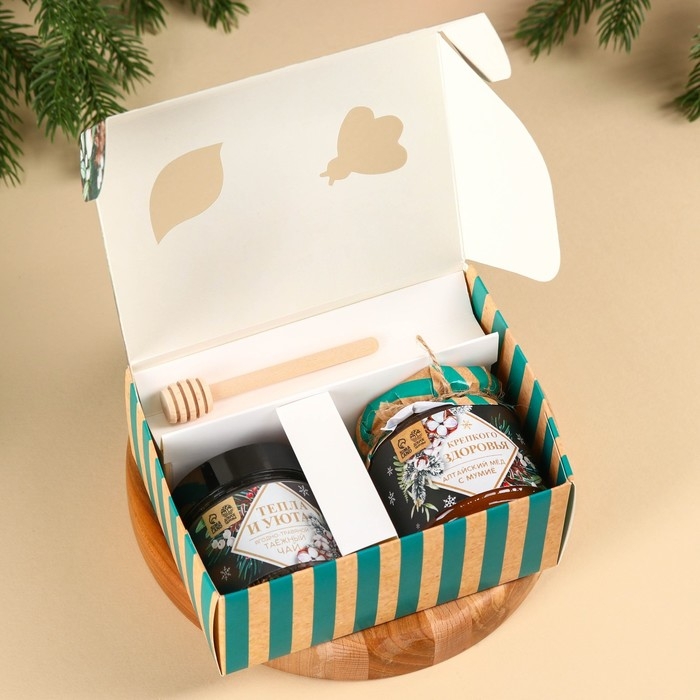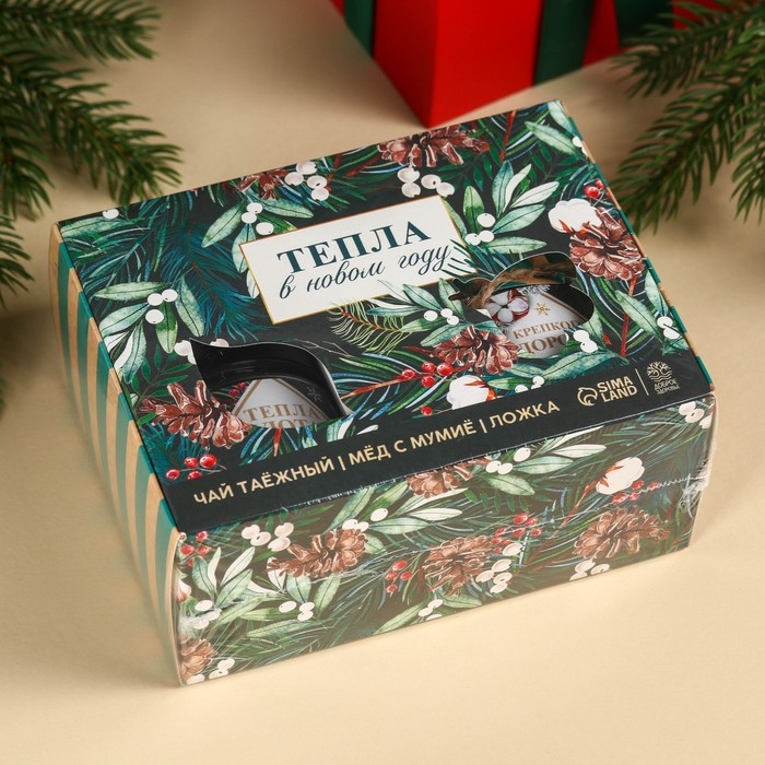 Подарочный набор «Новый год: Тепла в новом году»: алтайский мёд с мумиё 240 г., ягодно-травяной чай 50 г., ложка для мёда