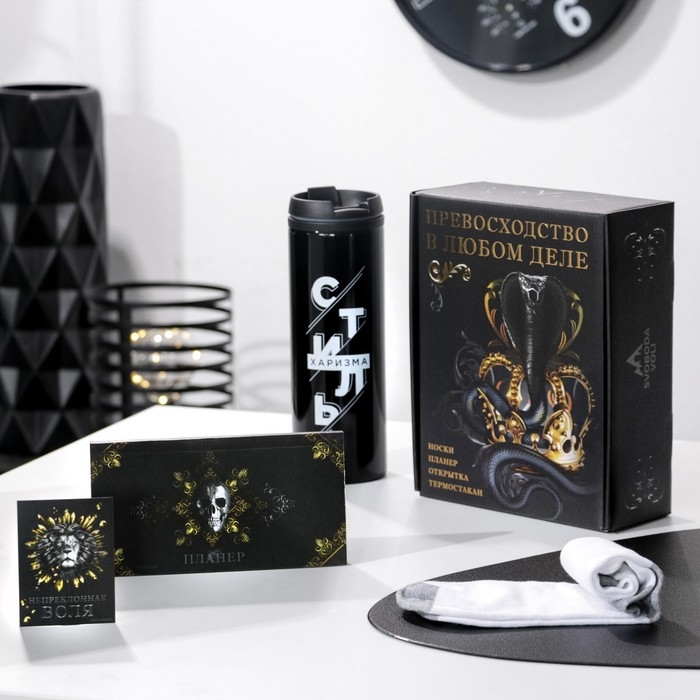 Подарочный набор «Превосходство», термостакан, планер, открытка, носки МИКС