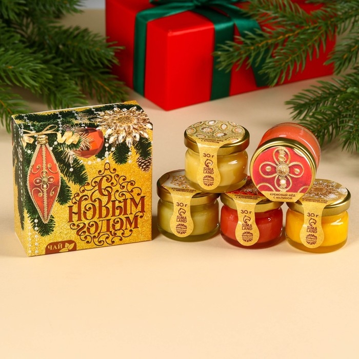 Подарочный набор «С новым годом»: чай чёрный (50 гр),крем-мед (5 шт x 30 гр)