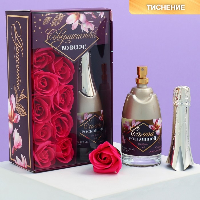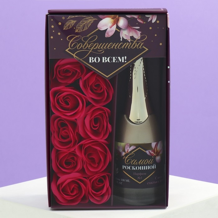Подарочный набор «Совершенства во всем»: парфюм шампанское (100 мл), мыльные лепестки (розы)