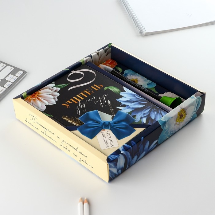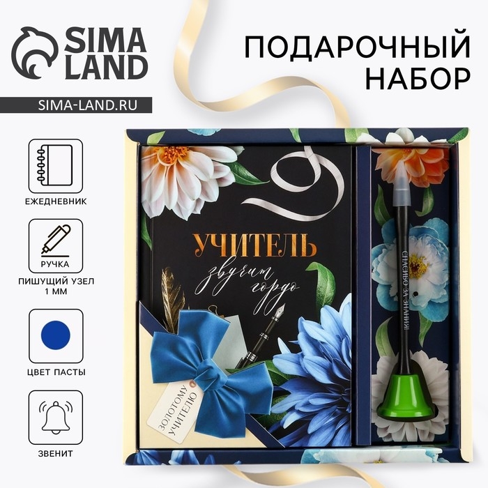 Подарочный набор «УЧИТЕЛЬ звучит гордо»: ежедневник и ручка-колокольчик (шариковая, синяя паста, 1 мм)