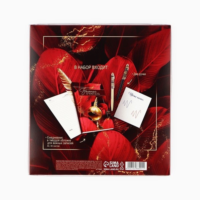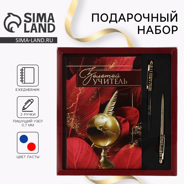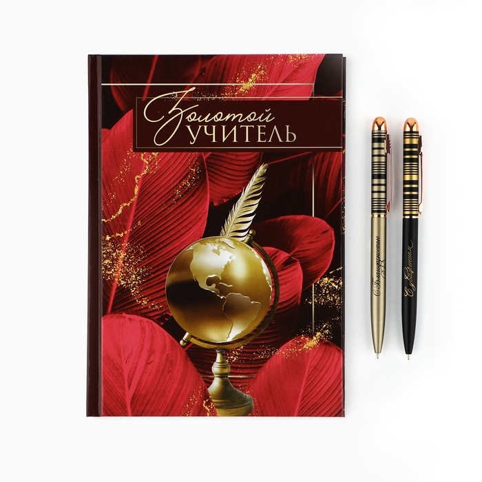Подарочный набор «Учителю: Золотой учитель»: ежедневник А5, 80 листов и 2 ручки шариковые, 1 мм