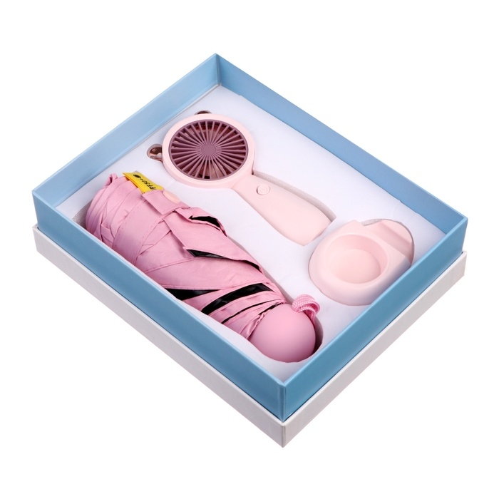 Подарочный набор вентилятор и зонт, розовый