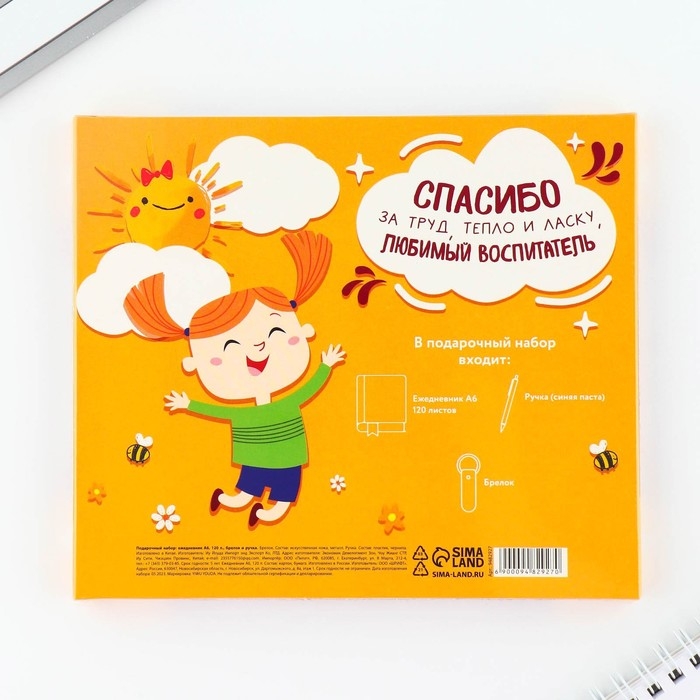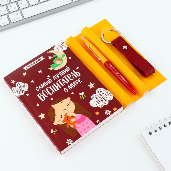 Подарочный набор «Воспитателю: Самый лучший воспитатель в мире»: ежедневник А6, 120 л., брелок, ручка
