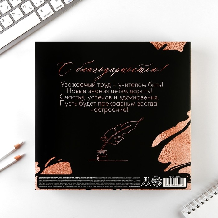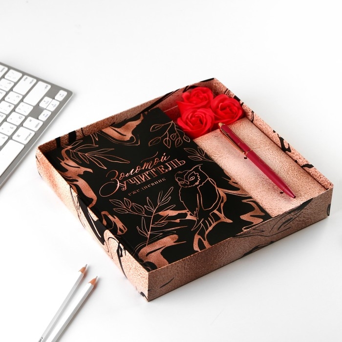 Подарочный набор «Золотой учитель»:ежедневник А5 80 листов, ручка шариковая металл 0,8 мм, мыльные лепестки 3 шт