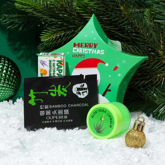 Подарочный новогодний набор №3: ингалятор, бальзам для губ и маска для лица