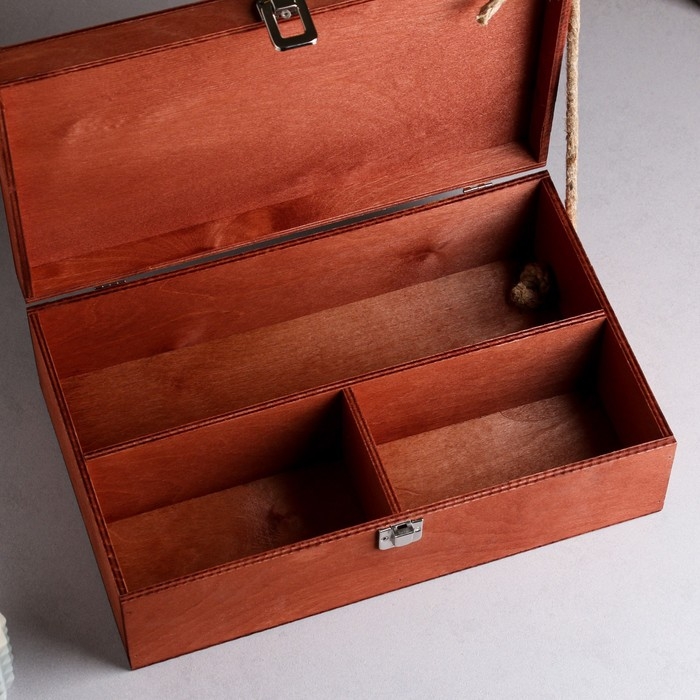 Подарочный ящик 34×21.5×10.5 см деревянный 3 отдела, с крышкой, светло-коричневый