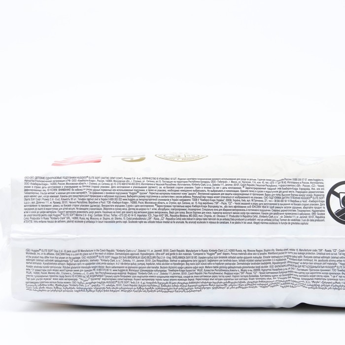 Подгузники Huggies Elite Soft, 4-6 кг (размер 2), 50 шт