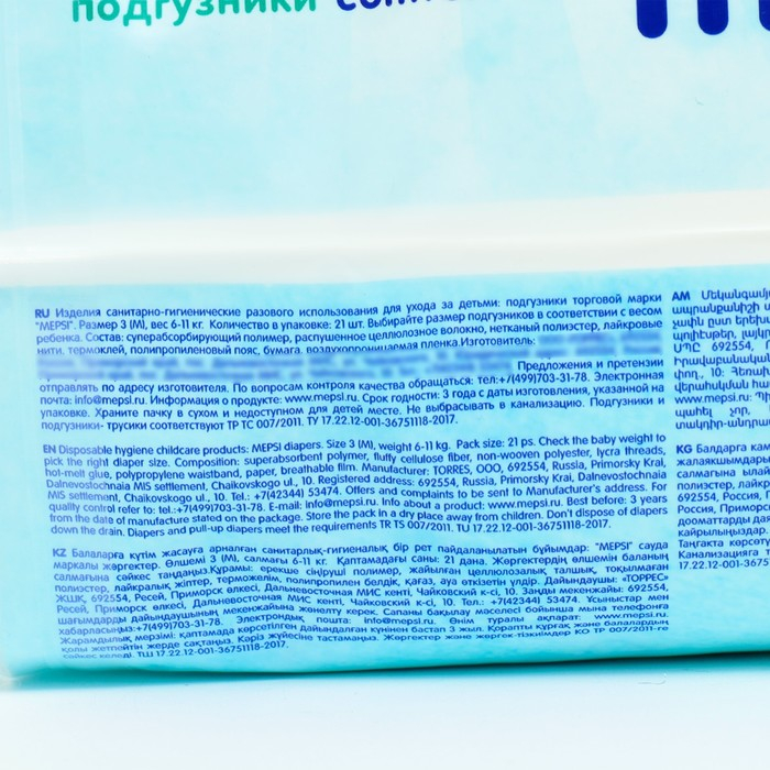 Подгузники Mepsi-премиум М (6-11 кг), 21 шт
