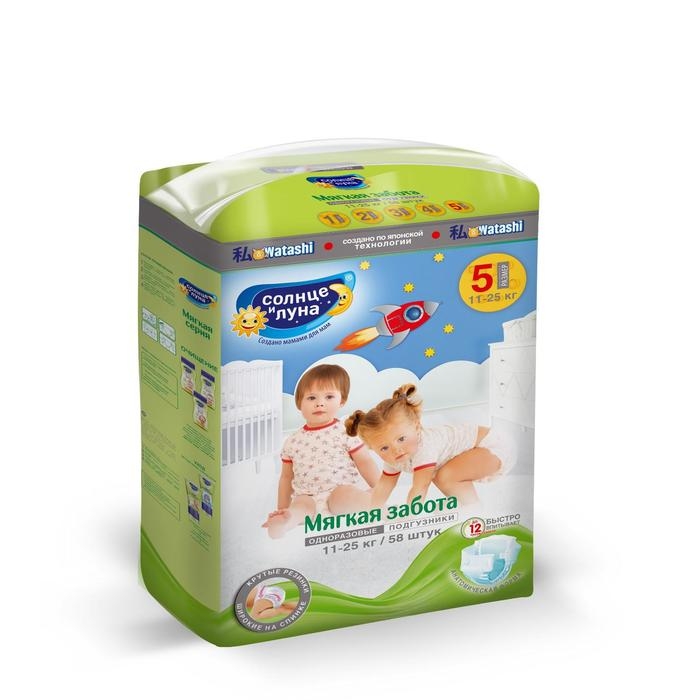 Подгузники «Солнце и Луна» XL (11-25 кг), 58шт