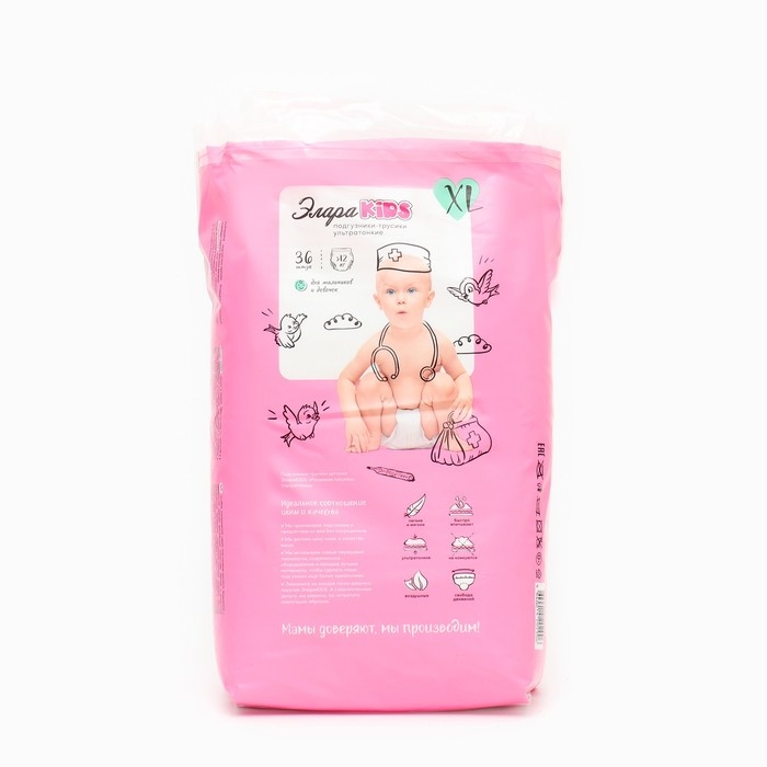 Подгузники-трусики детские дневные ультратонкие ЭлараKIDS размер 5, XL 36 шт