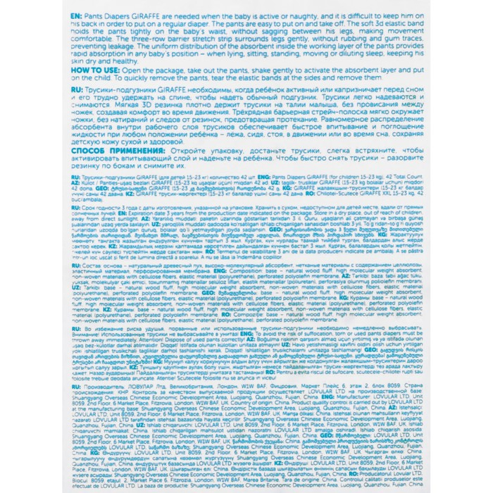 Подгузники-трусики «Lovular» Giraffe, 15-25 кг, 42 шт