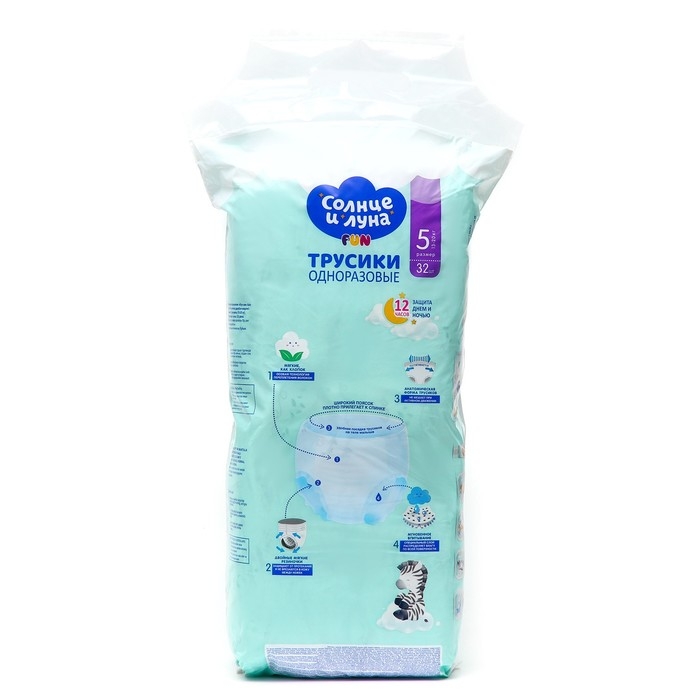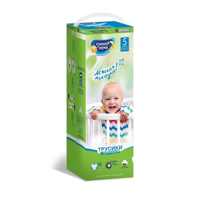 Подгузники-трусики "Солнце и луна" 5/XL, мягкая забота, 13-20 кг, 32 шт