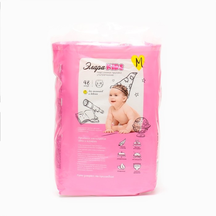 Подгузники-трусики тонкие ЭлараKIDS размер 3, M 48 шт