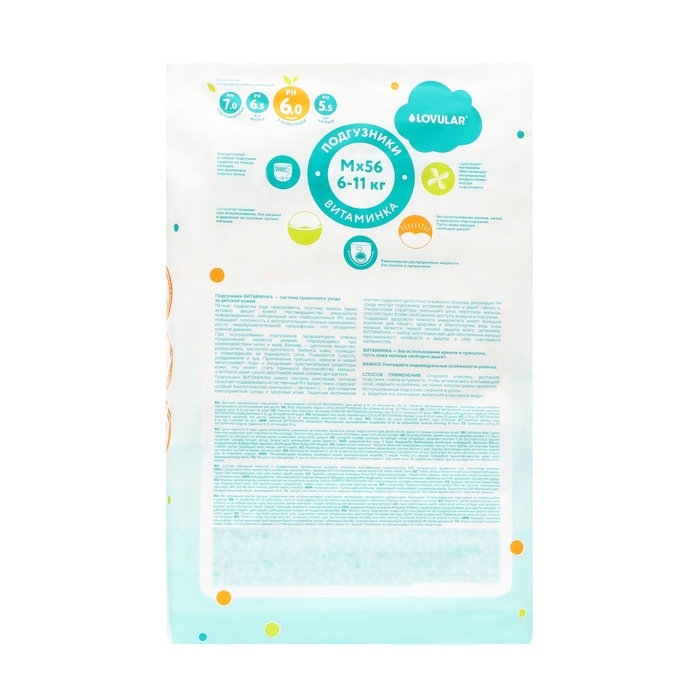 Выбирайте подгузники " LOVULAR ВИТАМИНКА" для заботы о здоровье и комфорте вашего малыша. Позвольте коже вашего ребенка свободно дышать, используя инновационные подгузники от LOVULAR.