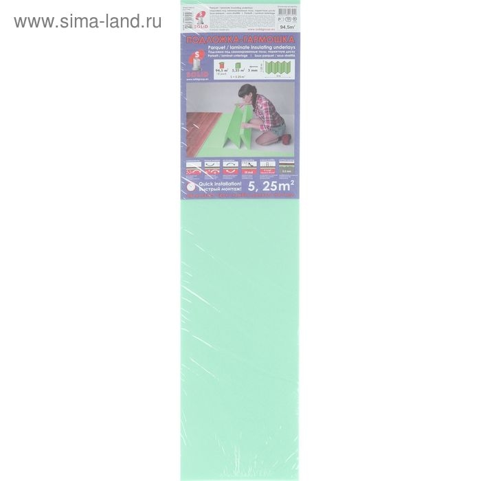 Подложка-гармошка под ламинат, зелёная, 1050 × 5000 × 3 мм, 5,25 м2