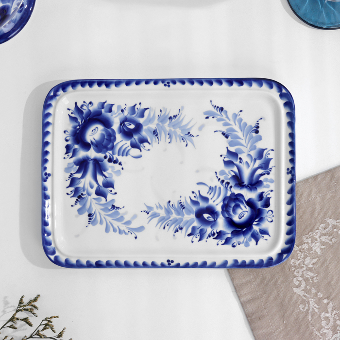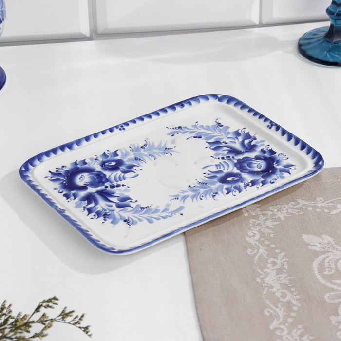 Поднос «Цветочный», 23х17х2 см, гжель