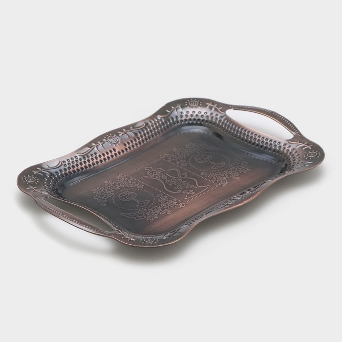 Поднос из нержавеющей стали с ручками «Изобилие», 31×20×2,5 см, цвет бронзовый