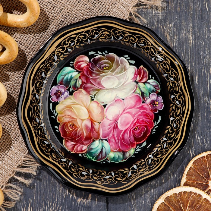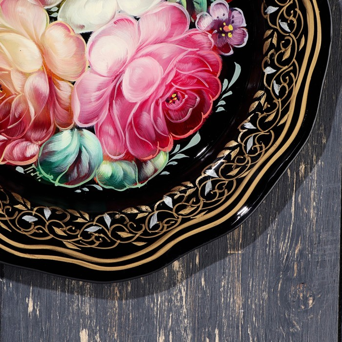 Подносы с жостовской росписью известны во всём мире. Изделия отличаются уникальными рисунками, в которых преобладают цветочные мотивы. Изображения букетов и плодов не срисовываются с натуры, они являются реализацией фантазии художника. Ловким движением кисти он наделяет каждый бутон объёмом и цветом.