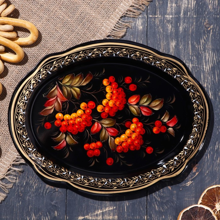 Поднос жостовский , 30х23 см, малый, овал