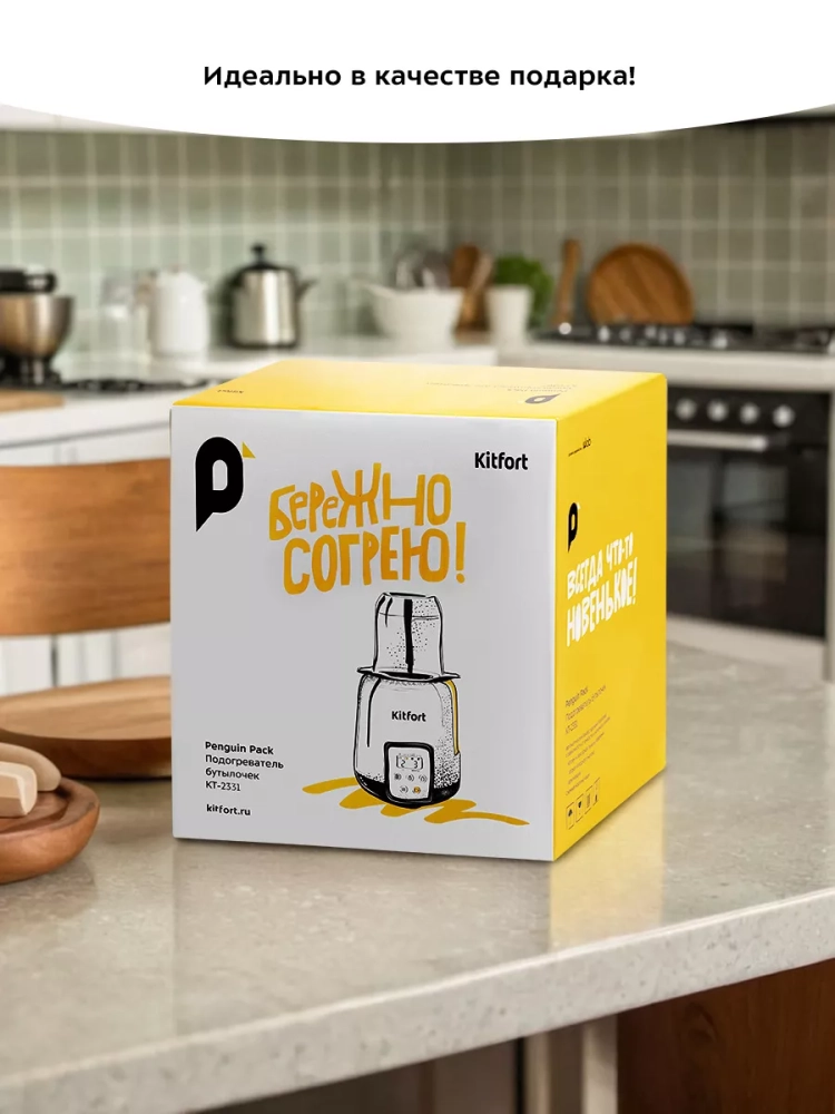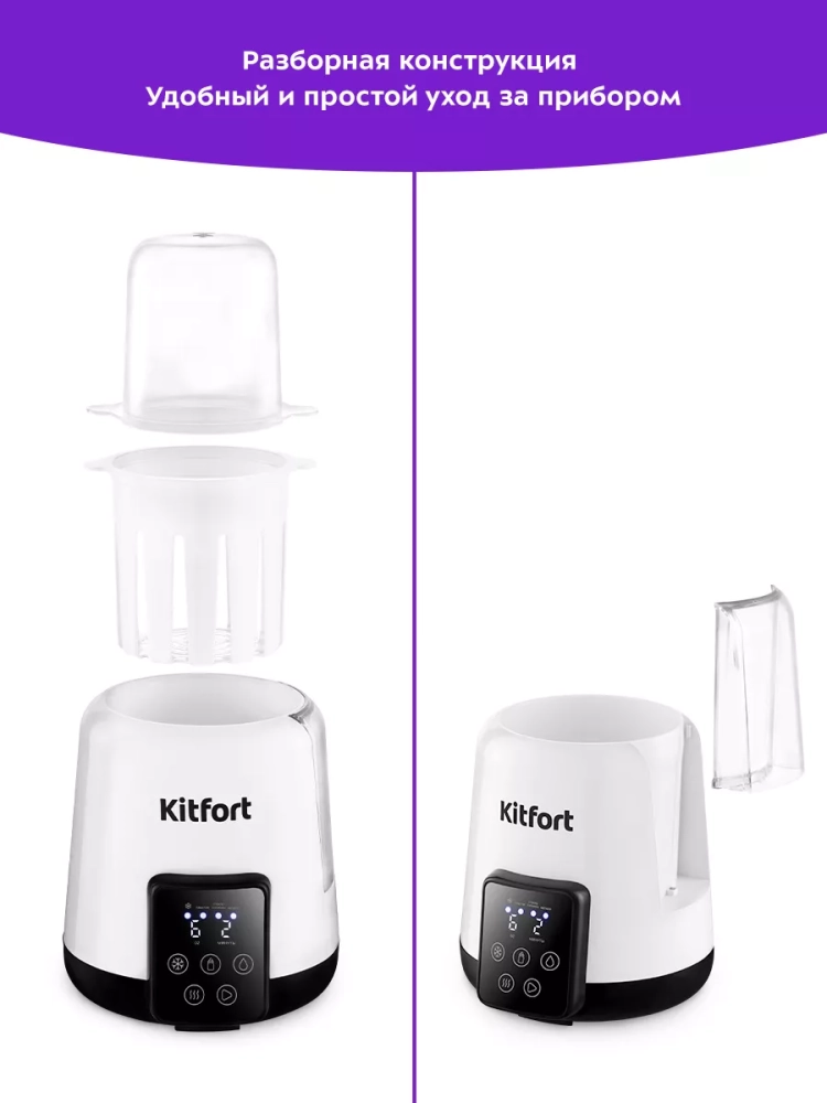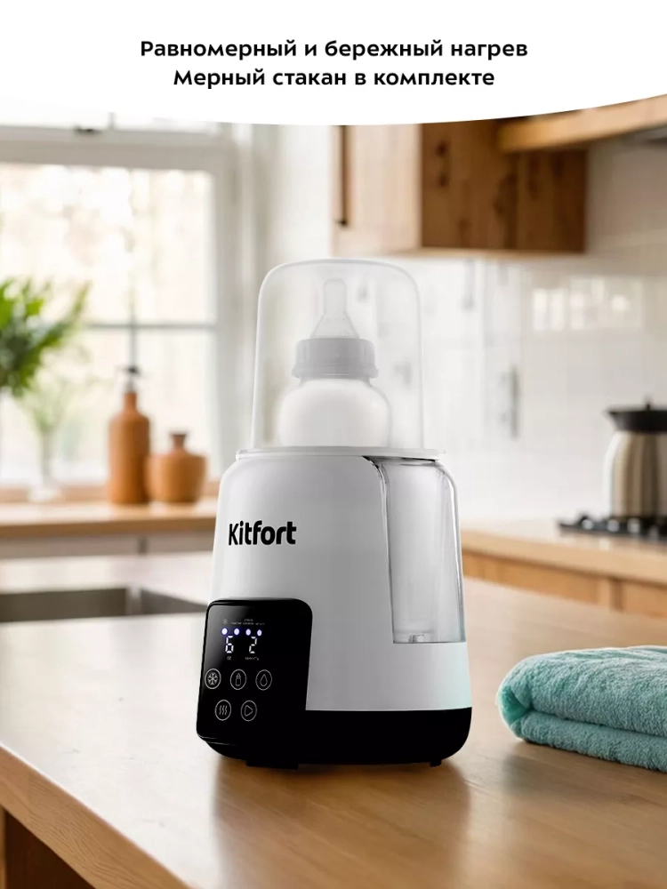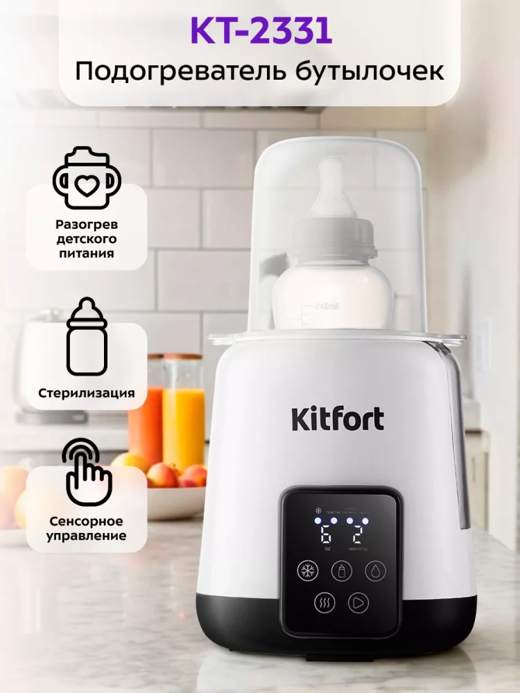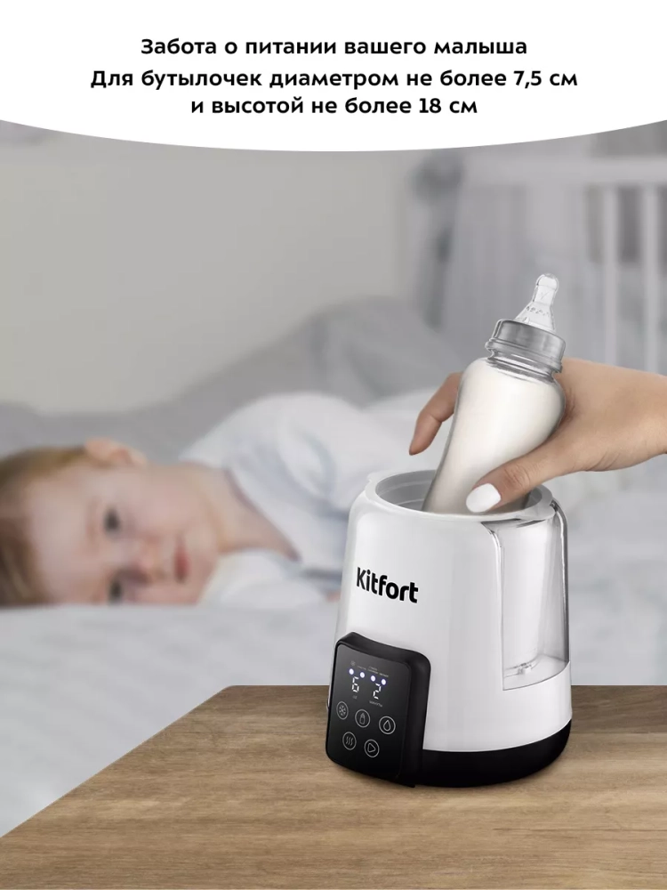 В подогревателе бутылочек Kitfort КТ-2331 можно разогреть детское питание или молоко и простерилизовать мелкие детские предметы, такие как соски, пустышки и прочее. В приборе можно разогреть детское питание не только комнатной температуры, но и холодное (5 °С).