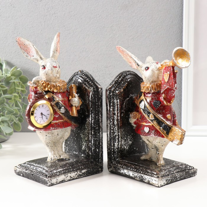 Подставка-держатель для книг интерьерная с часами"Заяц - паж" н-р из 2-х штук 2,5х21х8,5см