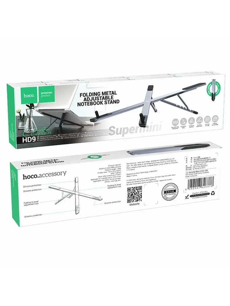 Подставка для ноутбука HD9, HOCO — это незаменимый аксессуар для комфортной работы с ноутбуком. Она обеспечивает надёжную фиксацию устройства и позволяет установить его под удобным углом наклона.