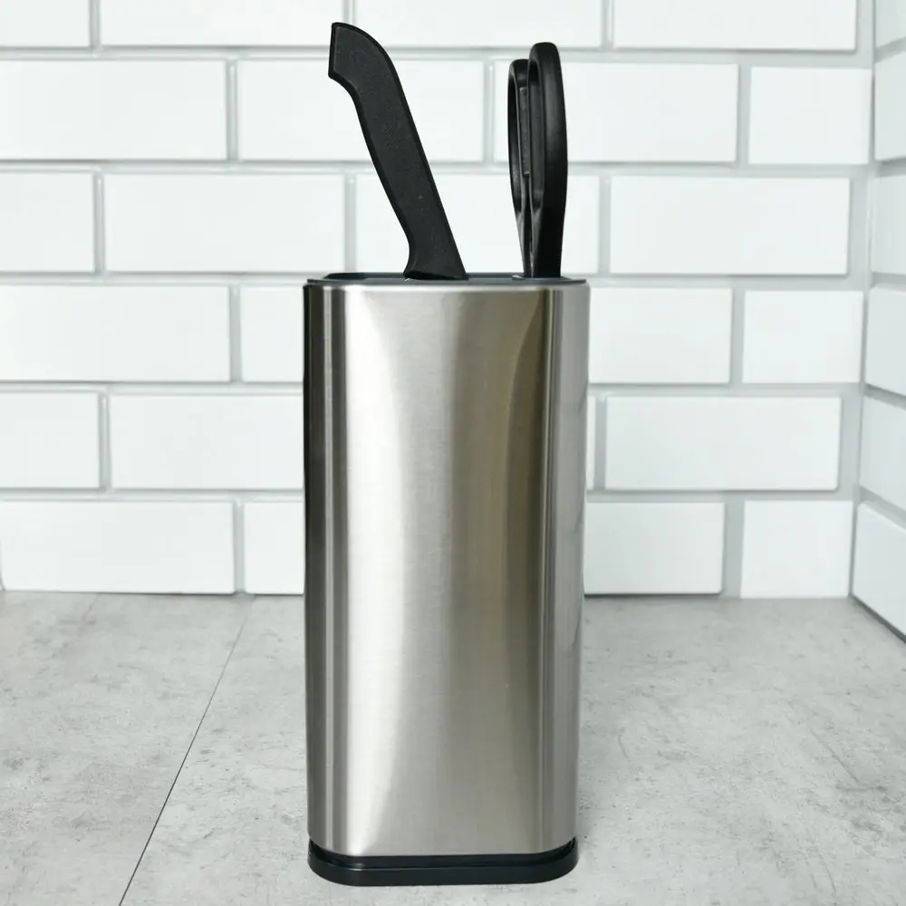 Привычные аксессуары для кухни в новом цвете! Безупречный дизайн и высокие эксплуатационные характеристики подставки для ножей позволяет ей занять почетное место на вашей кухне, а также стать замечательным подарком! Подставка предназначена для безопасного и гигиеничного хранения ножей и ножниц. Прекрасно подходит для керамических и металлических ножей, а также помогает сохранить их заточку. Подобная конструкционная особенность позволяет существенно продлить срок службы столовых приборов. Перед первым применением рекомендуется вымыть губкой или мягкой щеткой с жидким моющим средством, сполоснуть и просушить. Не рекомендуется мыть в посудомоечной машине.