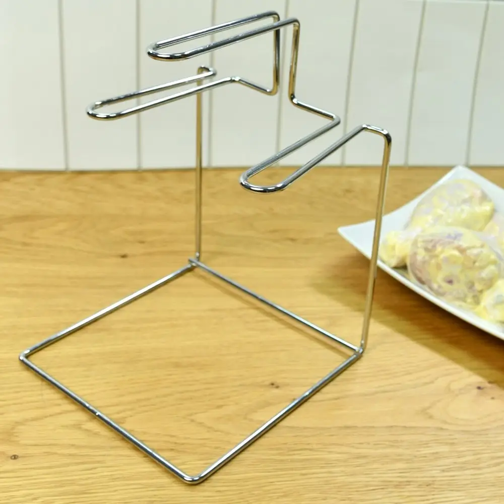 Любители вкусных куриных ножек оценят это приспособление. Теперь вам не нужно будет переживать, что мясо пригорит к сковороде или противню. Подставка для куриных ножек проста в использовании-предварительно замаринованные ножки подвесить, подставку разместить на противне и поставить в духовку. Лишний жир стечет на противень и ваше блюдо будет не только вкусным, но и полезным. Размер 15х14х20 см. Изготовлена из стальной хромированной проволоки.