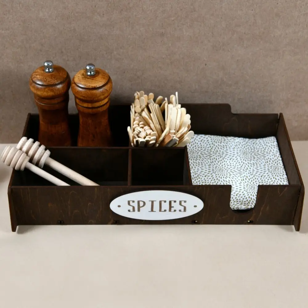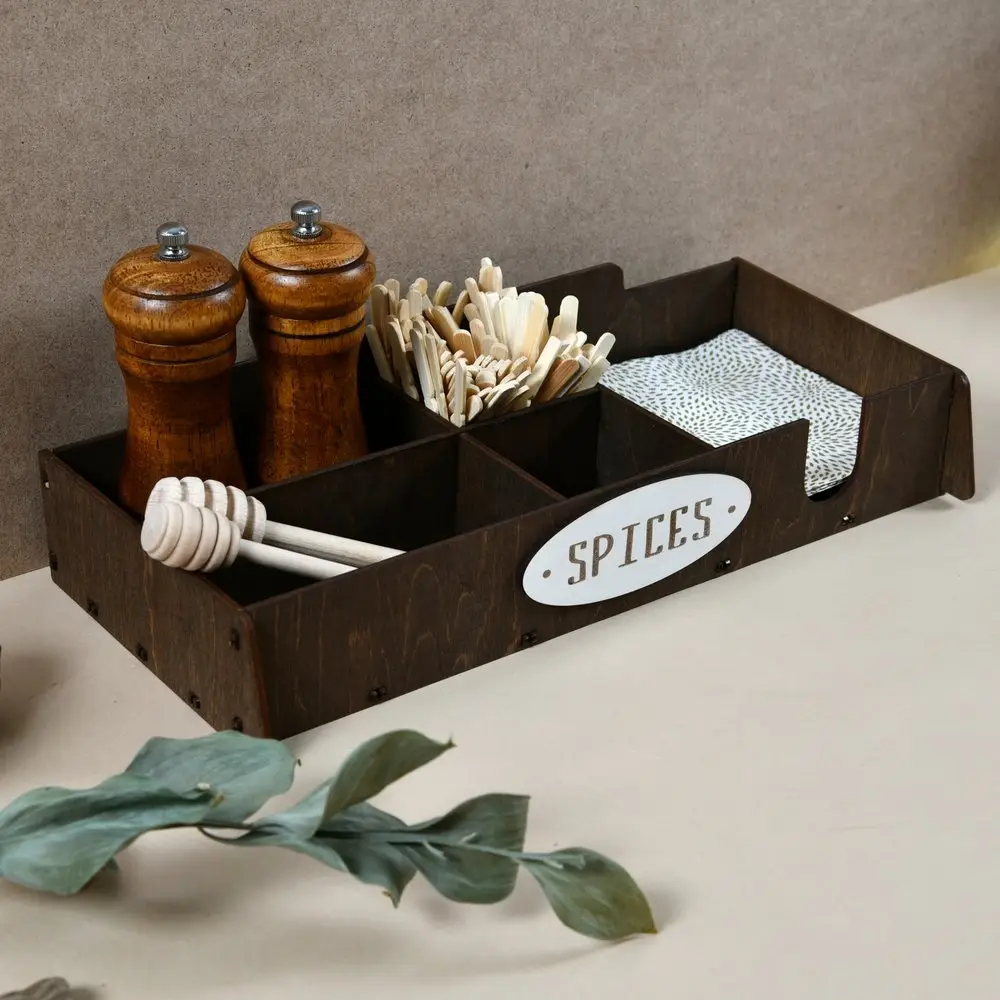 Упорядочите хранение специй и мелочей на своей кухне. Подставка предназначена для хранения специй, чайных и кофейных пакетиков, а также есть секция для хранения бумажных салфеток.