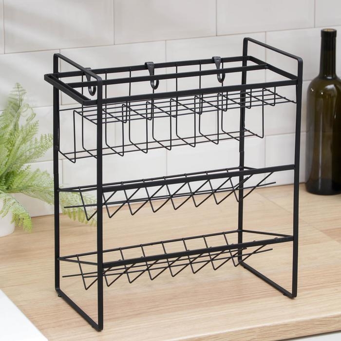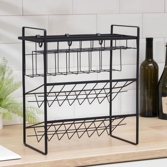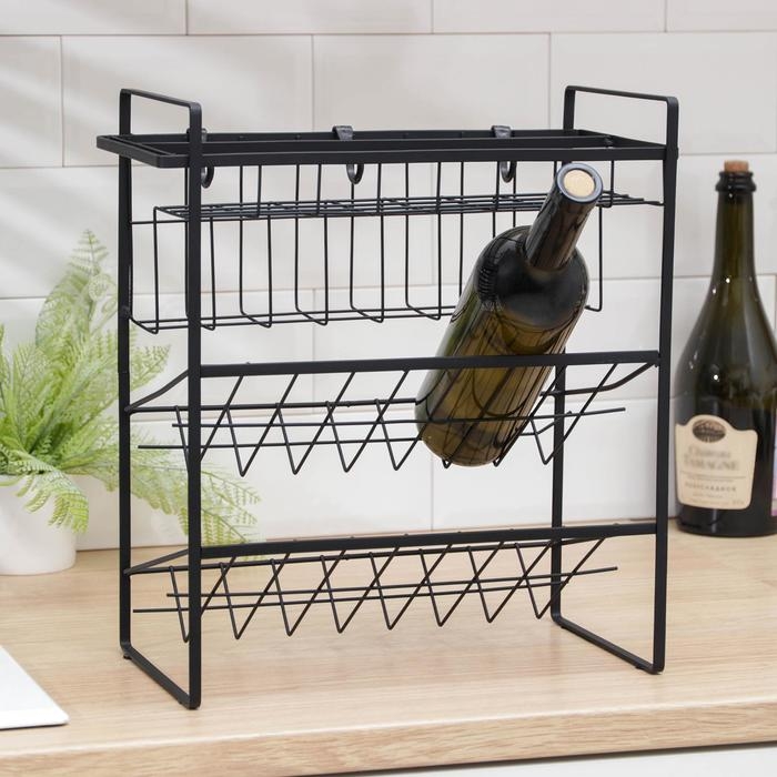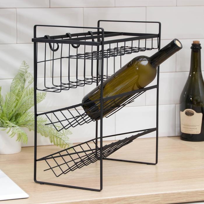 Подставка для бутылок Доляна, 2 яруса, угол 45 градусов, цвет чёрный