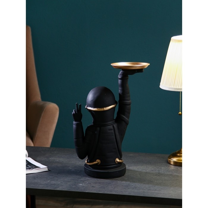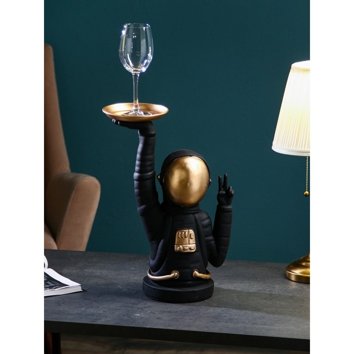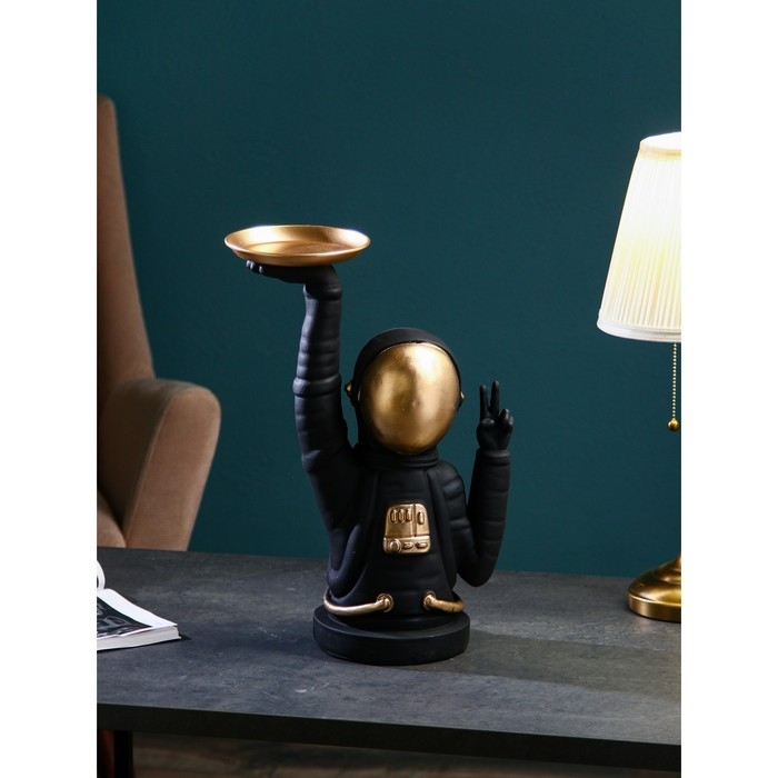 Подставка для мелочей «Космонавт», полистоун, 47 см, цвет чёрно-золотой