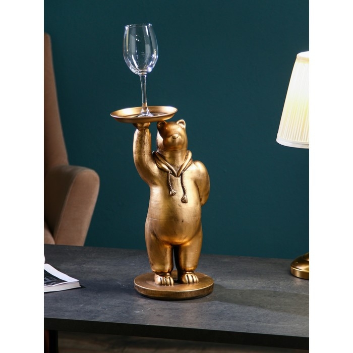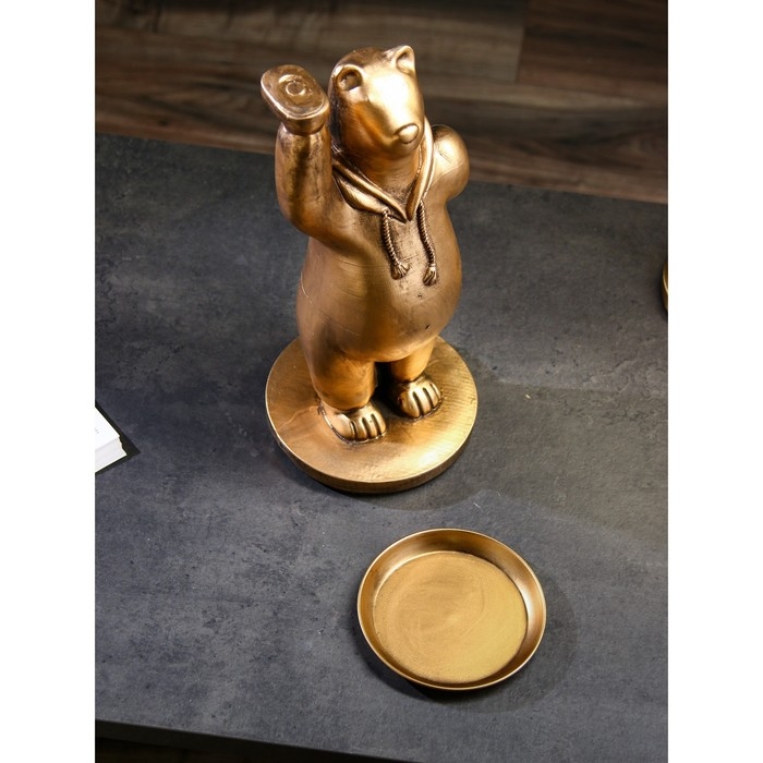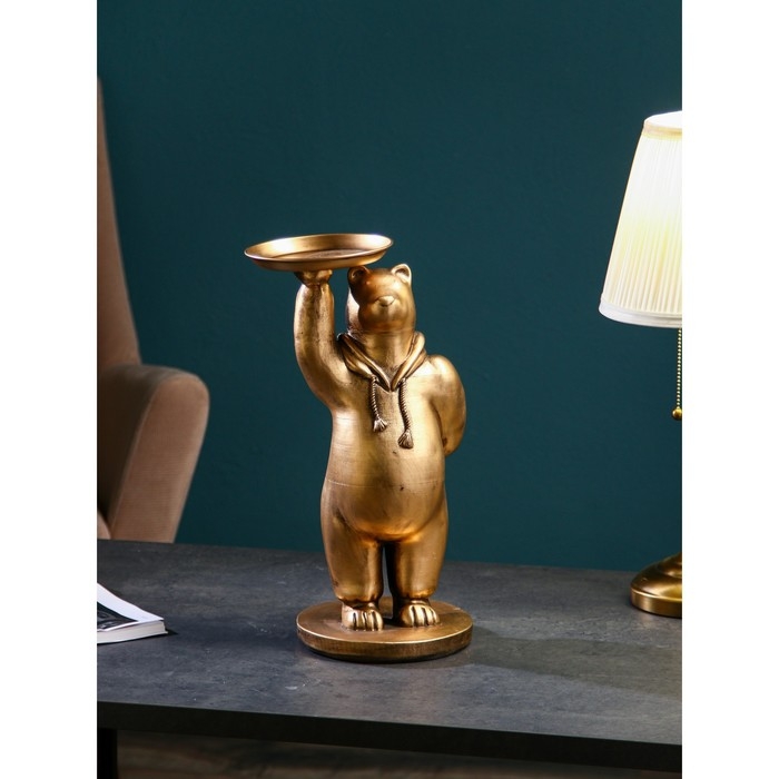 Подставка для мелочей «Медведь», полистоун, 45 см, цвет золото