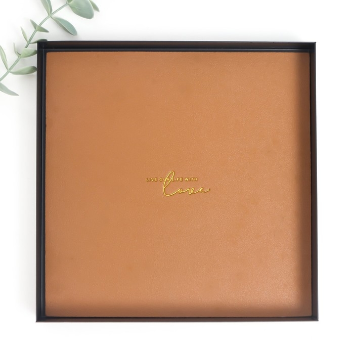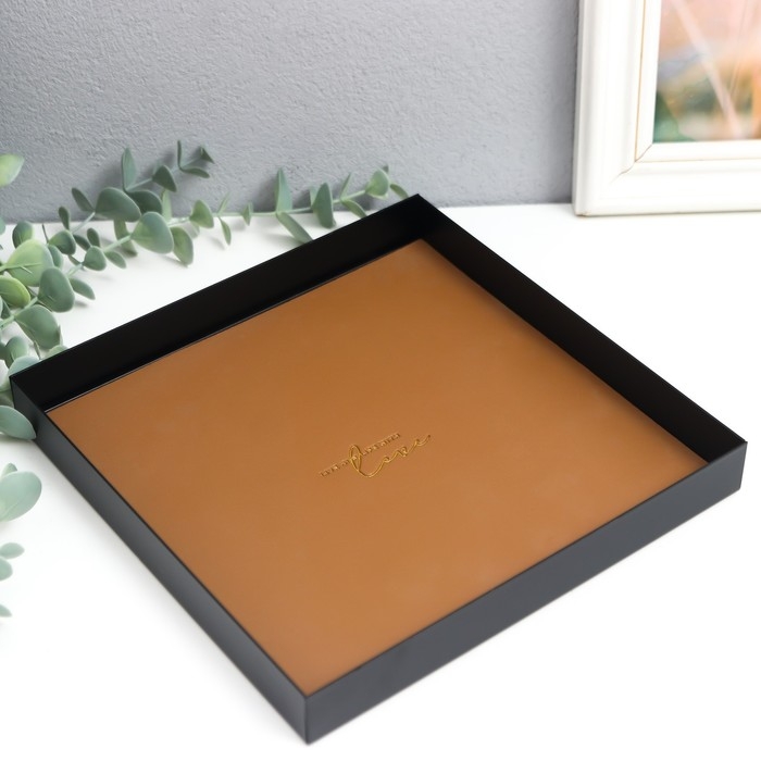 Подставка для мелочей металл, иск.кожа "Квадрат" чёрно-бежевая 20,5х20,5х2,5 см
