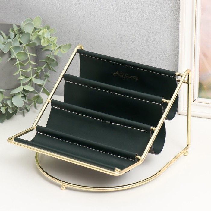 Подставка для мелочей металл, кожзам 4 яруса "Сканди" чёрная 20,5х20х14,5 см