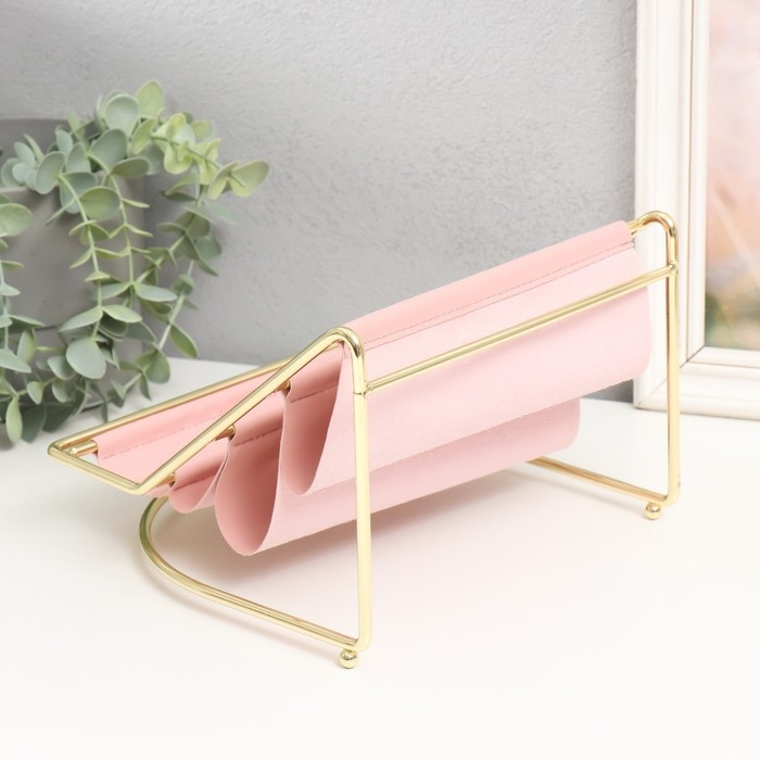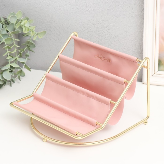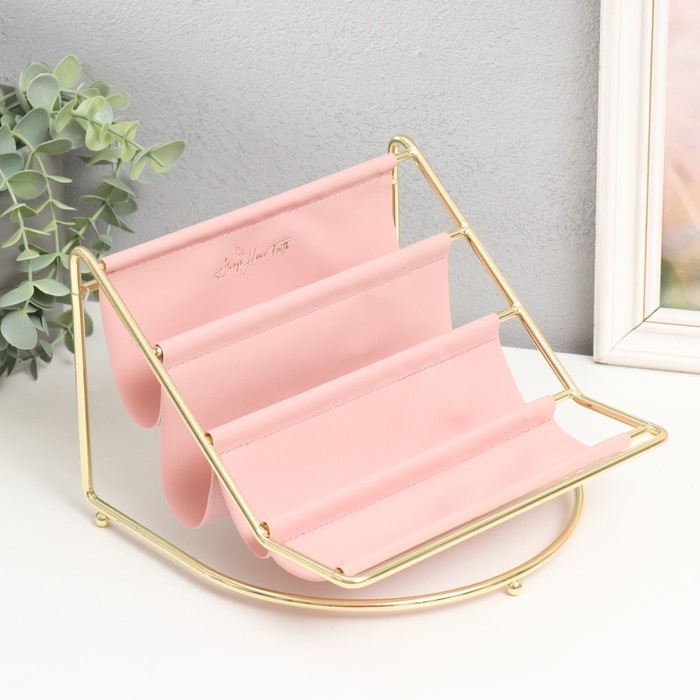 Подставка для мелочей металл, кожзам 4 яруса "Сканди" розовая 20,5х20х14,5 см