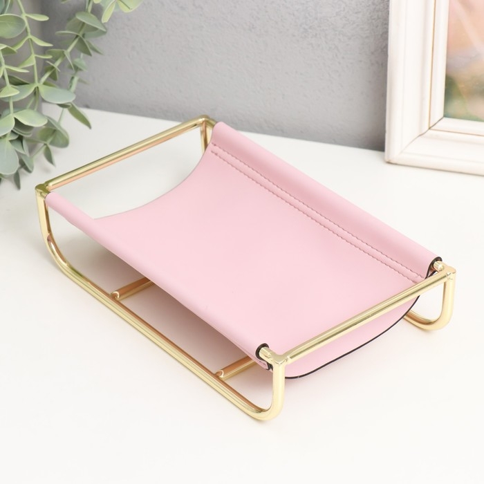 Подставка для мелочей металл, кожзам "Сканди" бледно-розовая 21х12х5 см