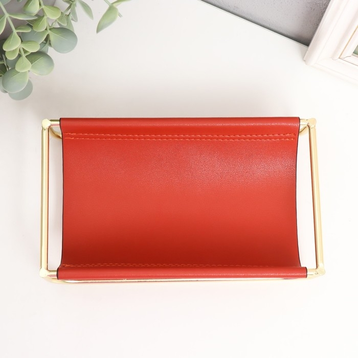 Подставка для мелочей металл, кожзам "Сканди" кирпичная 21х12х5 см