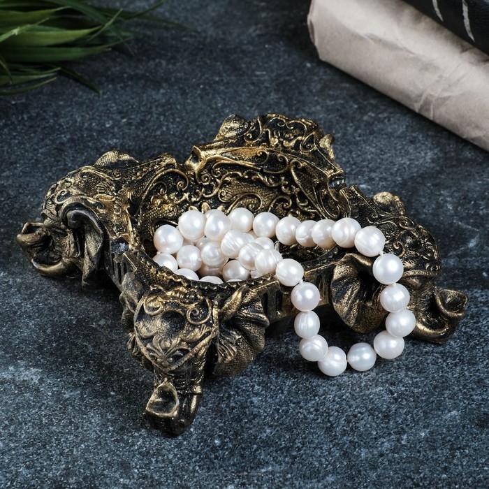 Подставка для мелочей "На четырех слонах" золото, 13х13х5см