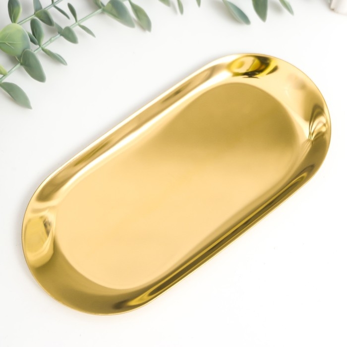 Подставка для мелочей нержавеющая сталь "Овал" золотистая 8,5х18 см