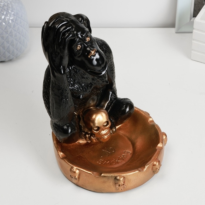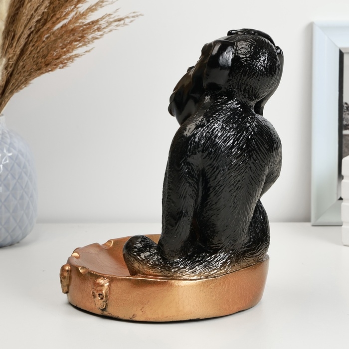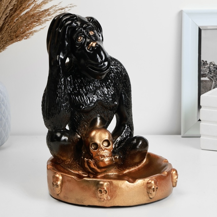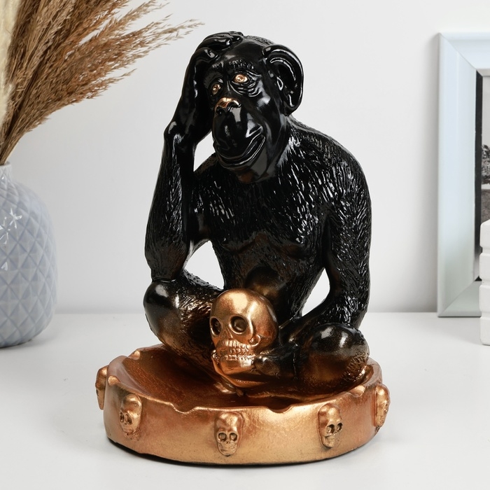 Подставка для мелочей "Обезьяна с черепом" черная бронза, 20см