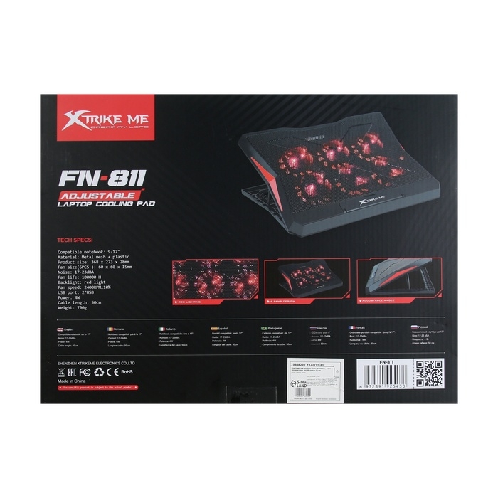 Подставка для ноутбука Xtrike Me FN-811, 6 вентиляторов, 2хUSB, кабель 50 мм