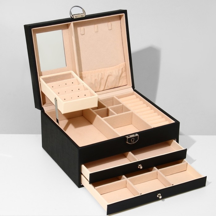 Подставка для украшений «Шкатулка» раздвижная с зеркалом, 22×17×11,5, цвет чёрный