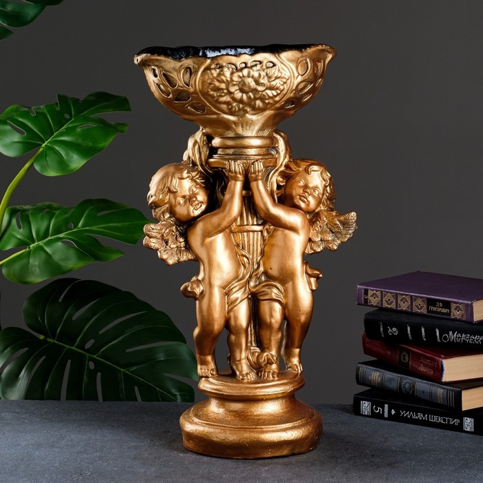 Подставка "Два ангела с ладьей" бронза, 20×28×52 см