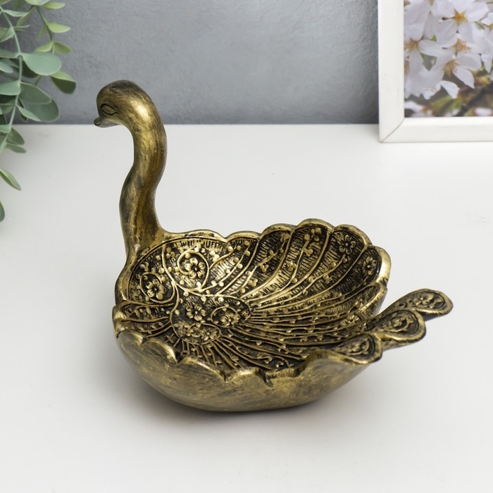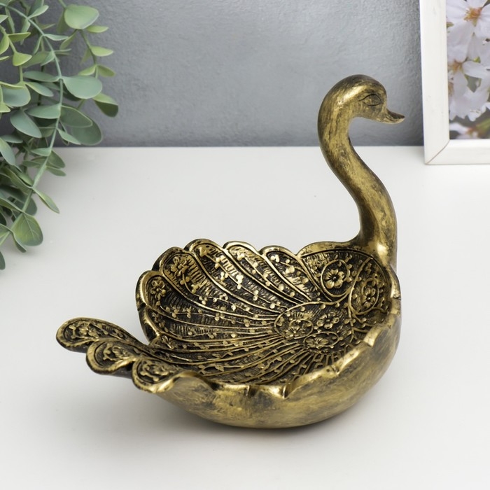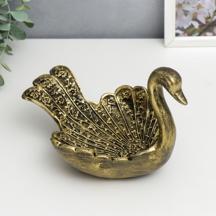 Подставка интерьерная полистоун "Лебедь" под латунь 21х14х15 см
