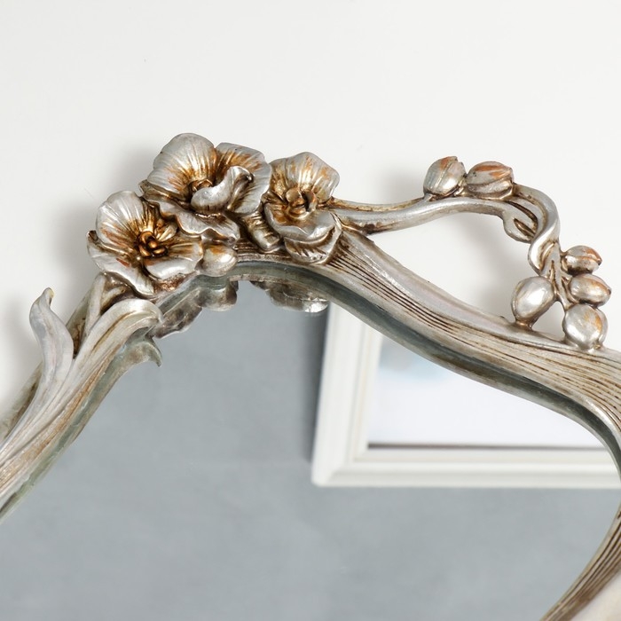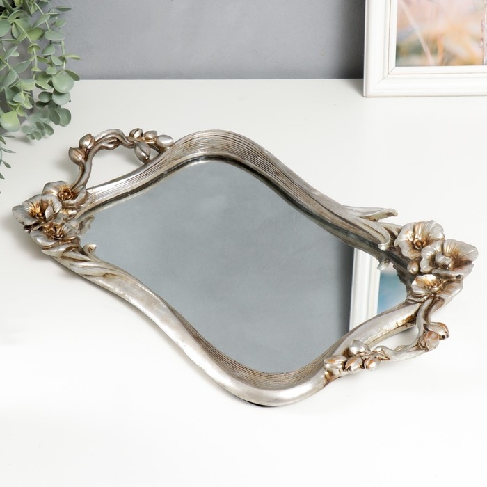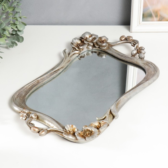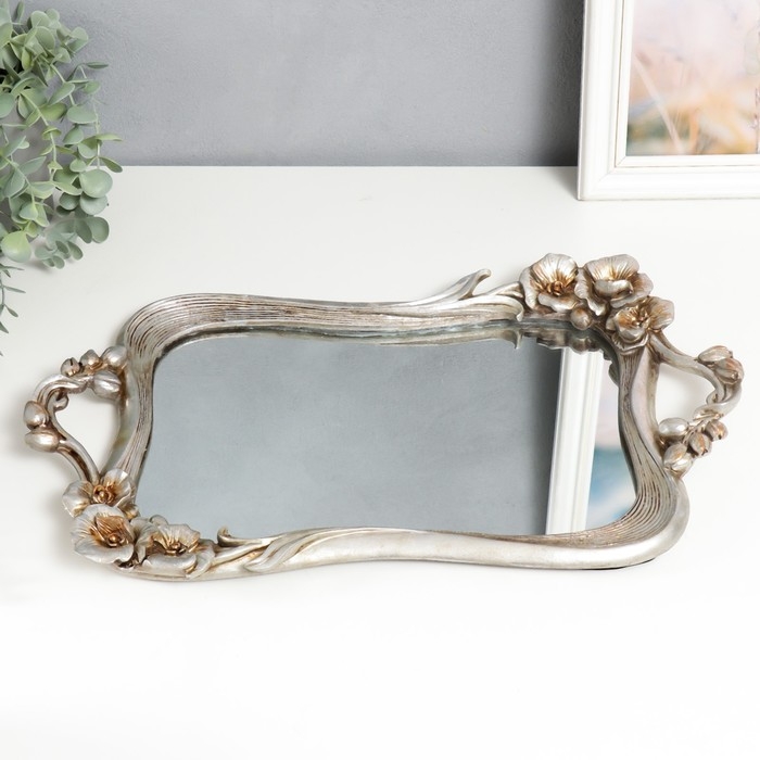 Подставка интерьерная полистоун с зеркалом "Цветы" прямоугольная, серебро 4,5х28х45 см