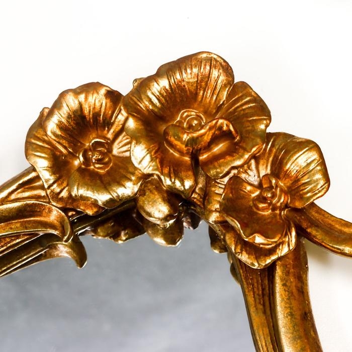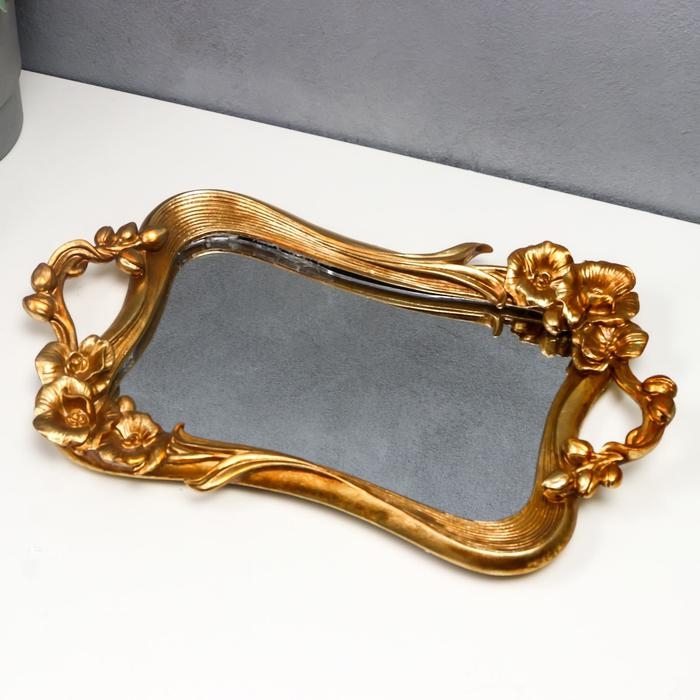 Подставка интерьерная полистоун с зеркалом "Золотые цветы" прямоугольная 23х40 см